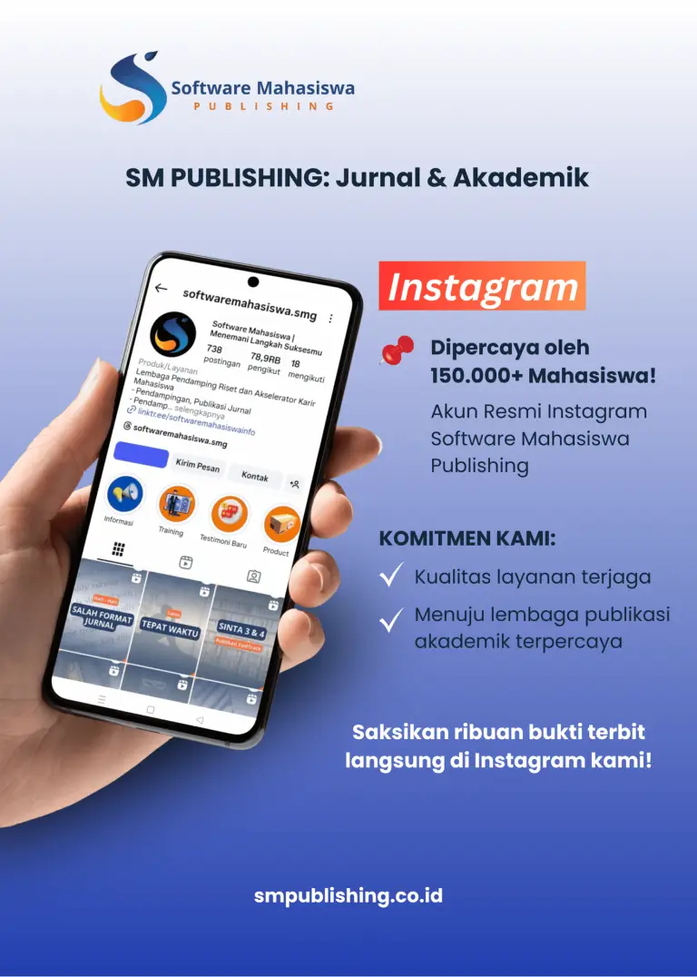Software Mahasiswa Publishing adalah lembaga publikasi ilmiah yang lengkap dan profesional. Kami tidak hanya fokus pada penerbitan jurnal, tetapi juga menyediakan layanan pendampingan akademik mulai dari cek Turnitin, parafrase, pengolahan data, hingga publikasi jurnal.